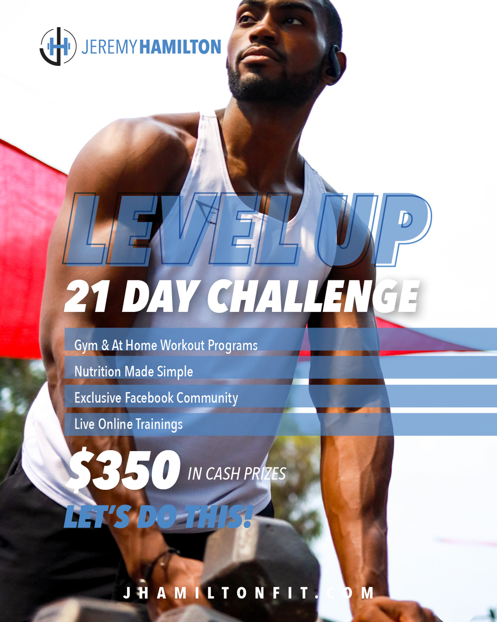 Kick off Summer 2022 right with the Level Up 21 Day Challenge! This challenge will not only help you get a jump start on your fitness goals but it will help you create long term habits and build lifelong skills! I will be including effective workout programs, tailored nutrition plans for your individual needs, an exclusive community, and best of all one on one access to my professional coaching!
